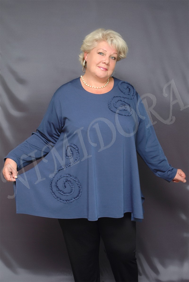 Туника из плотного, мягкого трикотажного полотна с эффектной декоративной отделкой.