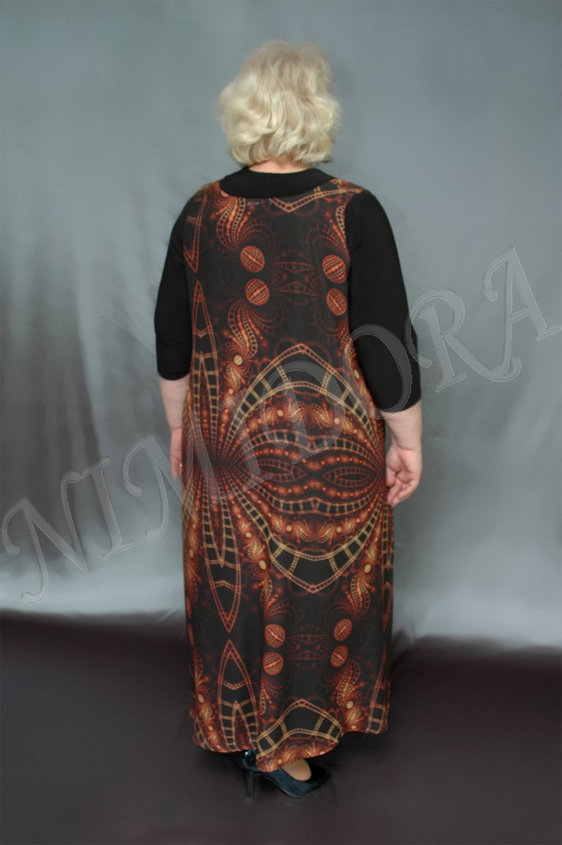 В боковых швах высокие разрезы. Низ платья, вырез и проймы подвернуты и подшиты.