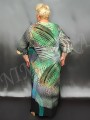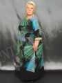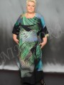 Нарядное платье из тонкой, неэластичной ткани с эффектным рисунком. Платье расклешенного силуэта. Полукруглый вырез отделан подкройной обтачкой. Платье отрезное под грудью. Нижняя деталь расклешенная. рукав цельнокройный с верхней частью платья, короткий, прямой с манжетом. Низ платья подвернут и подшит двойным эластичным швом. Платье без подплечников, без разрезов в боковых швах.