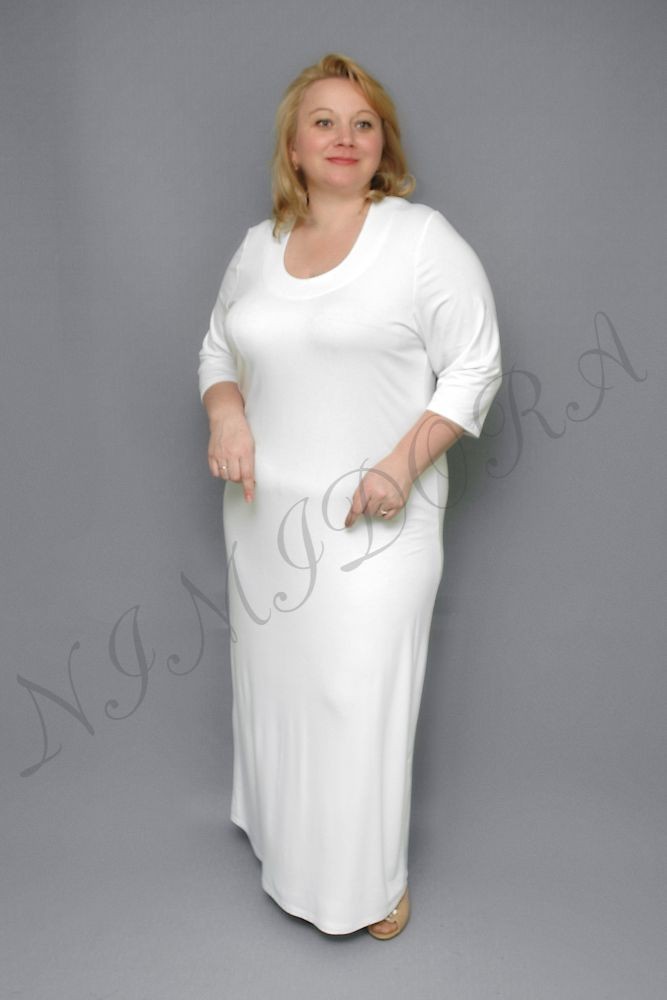 Платье выполнено из однотонного тонкого и очень эластичного трикотажа. Платье прямого силуэта. Полукруглый вырез обработан подкройной обтачкой. Перед без вытачек и рельефов. Спинка с центральным швом. Укороченный втачной рукав. Низ платья и край рукава подвернуты и подшиты двойным эластичным швом. Платье без подплечников, без разрезов в боковых швах. Платье так же можно носить с шифоновыми накидками.