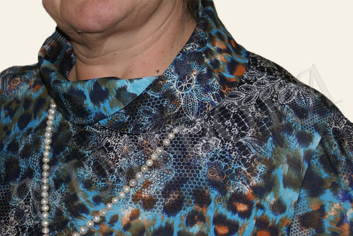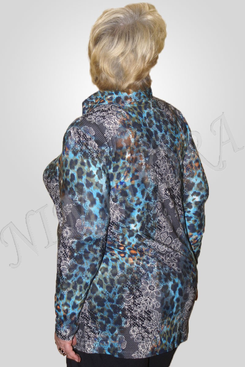 Красивая блуза из тонкого, гладкого, скользящего, очень эластичного трикотажного полотна с эффектным рисунком.
