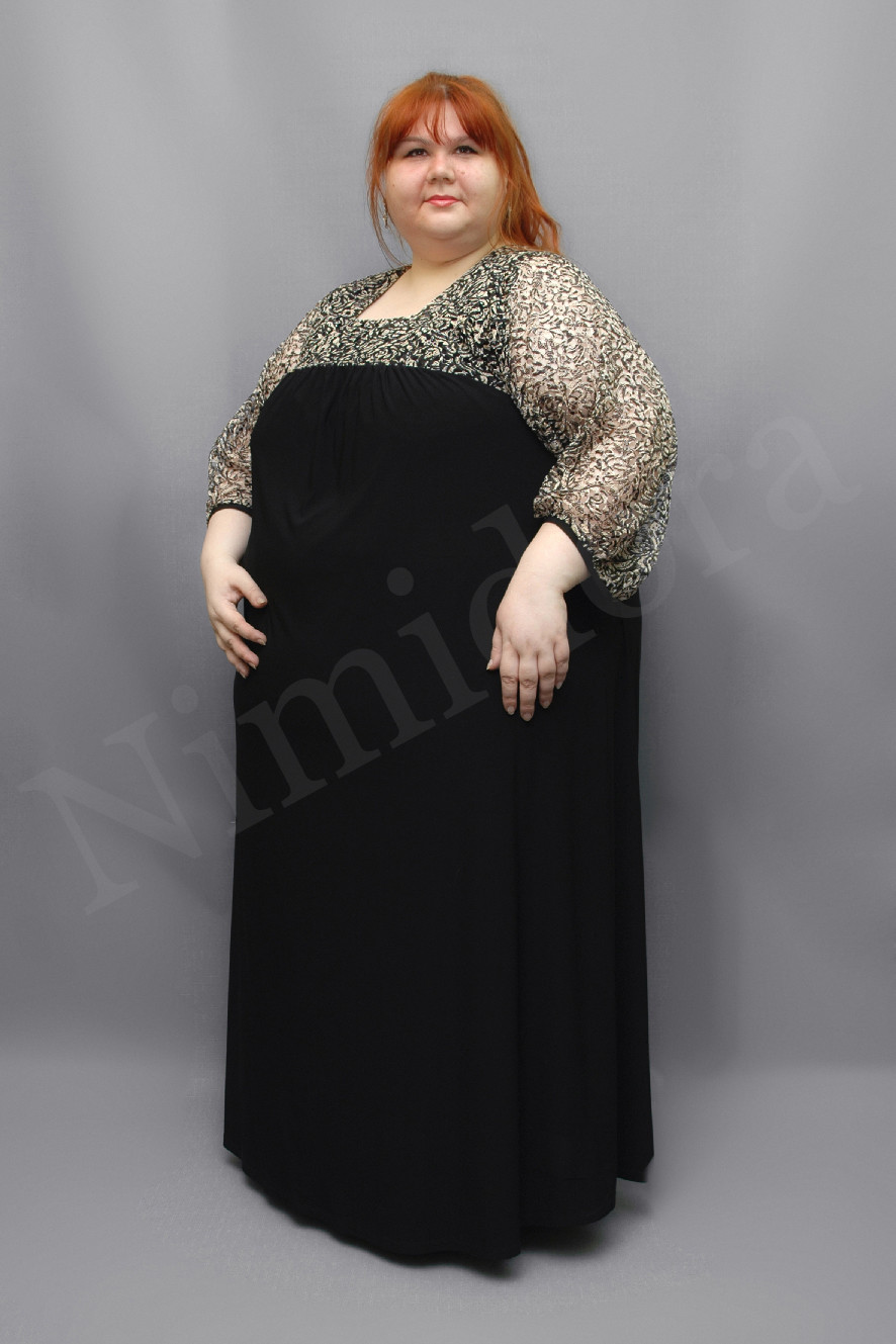 Слегка укороченный рукав, цельнокроенный с верхней частью платья из красивого мягкого кружева. Рукав широкий, слегка расклешенный. Внизу край рукава собран на узенькую, неэластичную манжету.Платье без подплечников, без разрезов в боковых швах. Низ платья подвернут и подшит двойным эластичным швом.