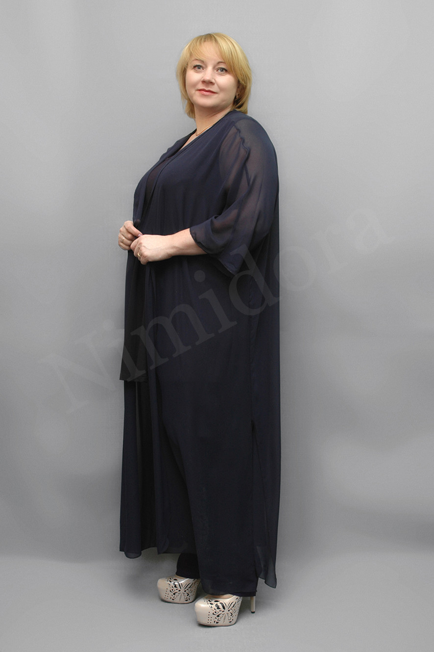 Накидка прямого силуэта. Без застежек, без завязок. Полочки не запахиваются. Накидка без вытачек и рельефов. Небольшой цельнокройный рукавчик. В боковых швах-разрезы высотой 80 см. Срезы полочек, низ накидки и край рукава отделаны плотным оверлоком. Длина по центру спинки 130-135 см.