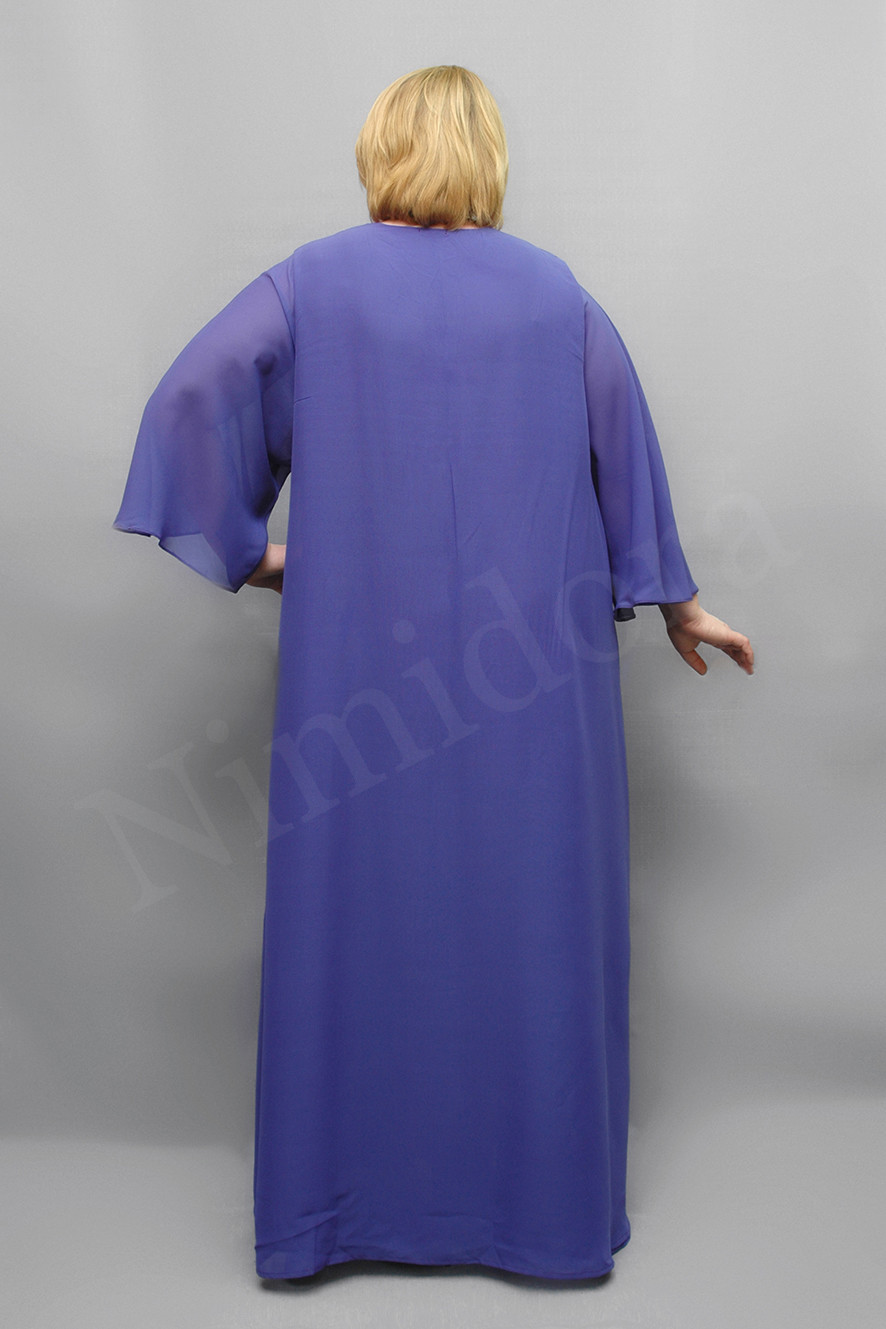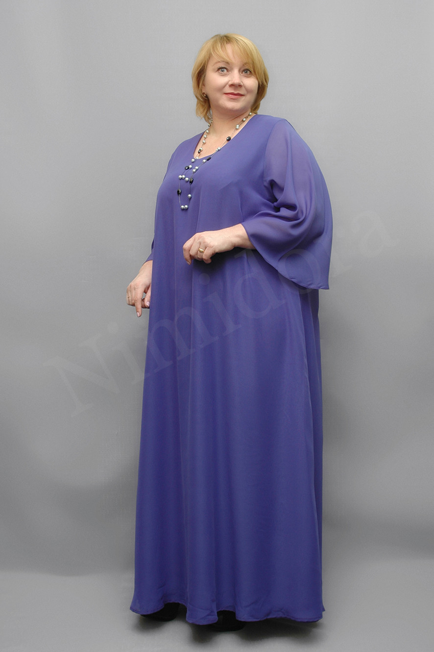 Красивое длинное платье из тонкого, гладкого, неэластичного полотна - шифона. Платье прямого силуэта, состоит из двух слоев шифона, соединенные между собой по линии горловины и проймам. Вырез полукруглый. Перед без вытачек, спинка без центрального шва. Рукав втачной, короткий, с одним швом. Платье без подплечников, без разрезов в боковых швах.