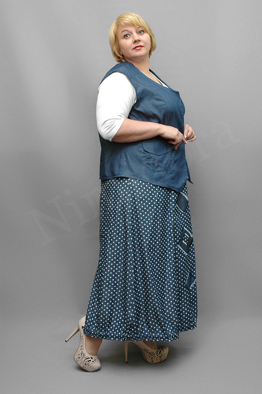 Юбка расклешенного силуэта из тонкой джинсовой неэластичной ткани с оригинальным рисунком.