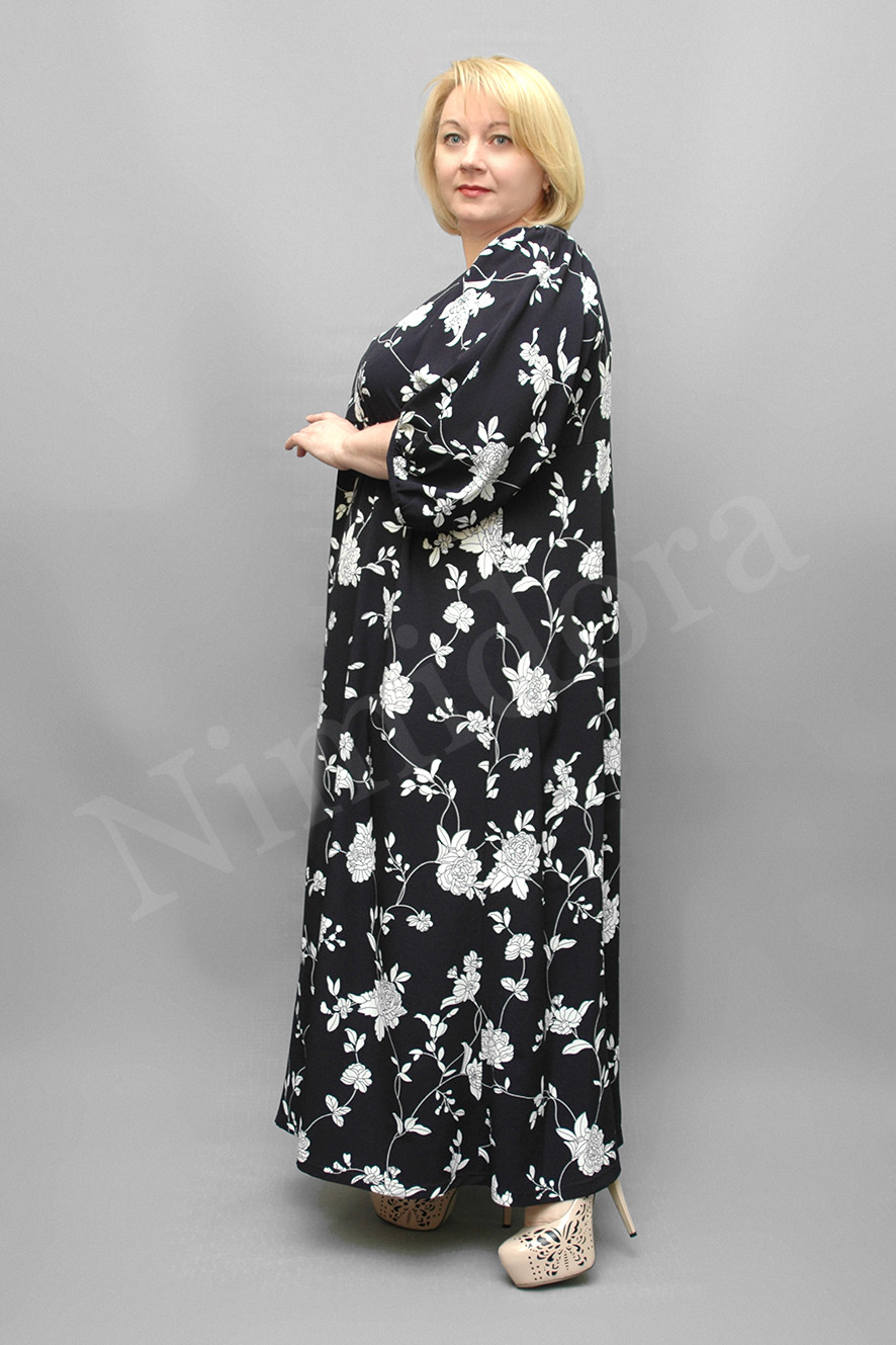 Нарядное длинное платье из мягкого, тонкого, полотна с красивым рисунком.