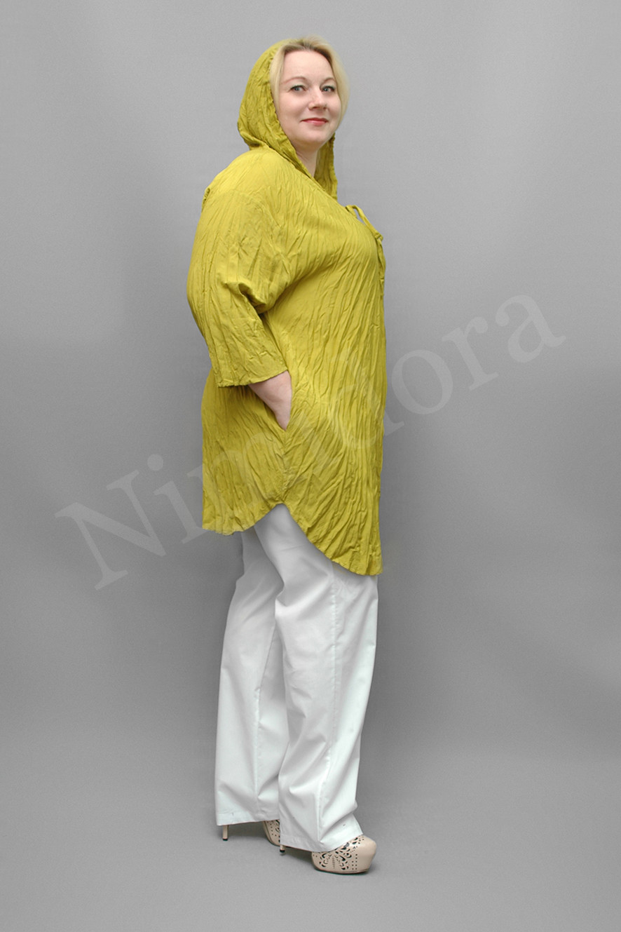 Туника с капюшоном из тонкой, мягкой, очень приятной на ощупь неэластичной ткани.