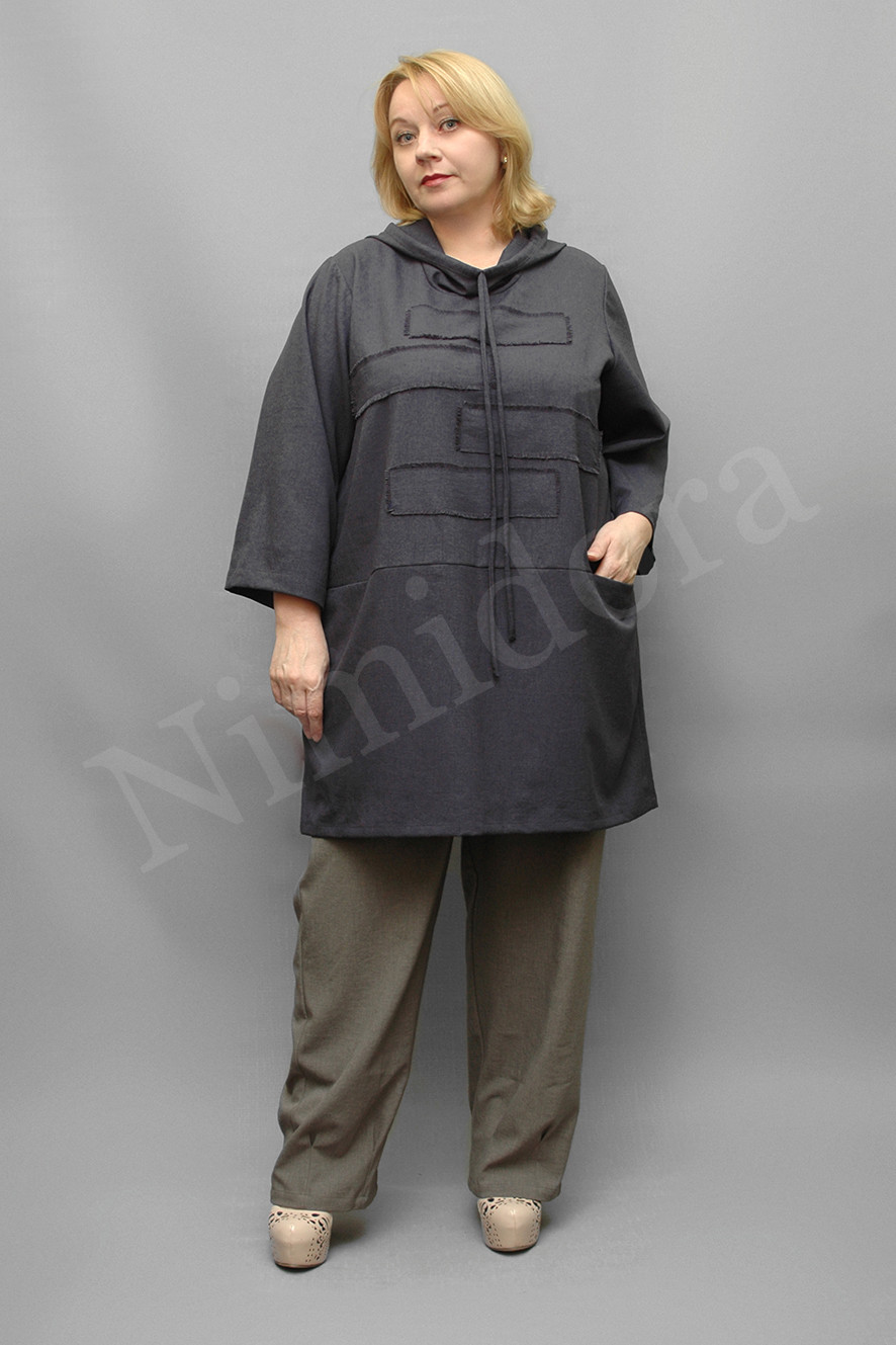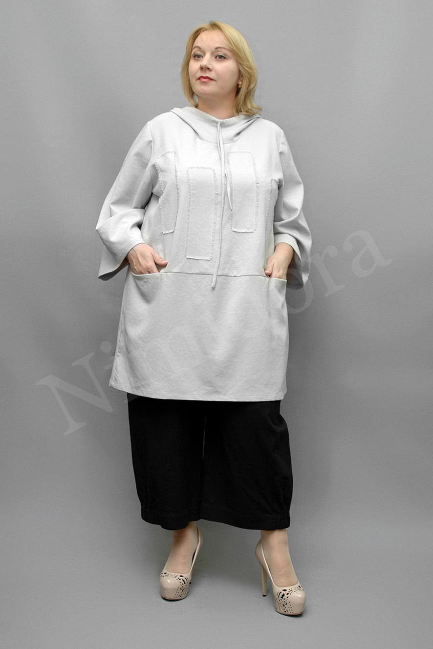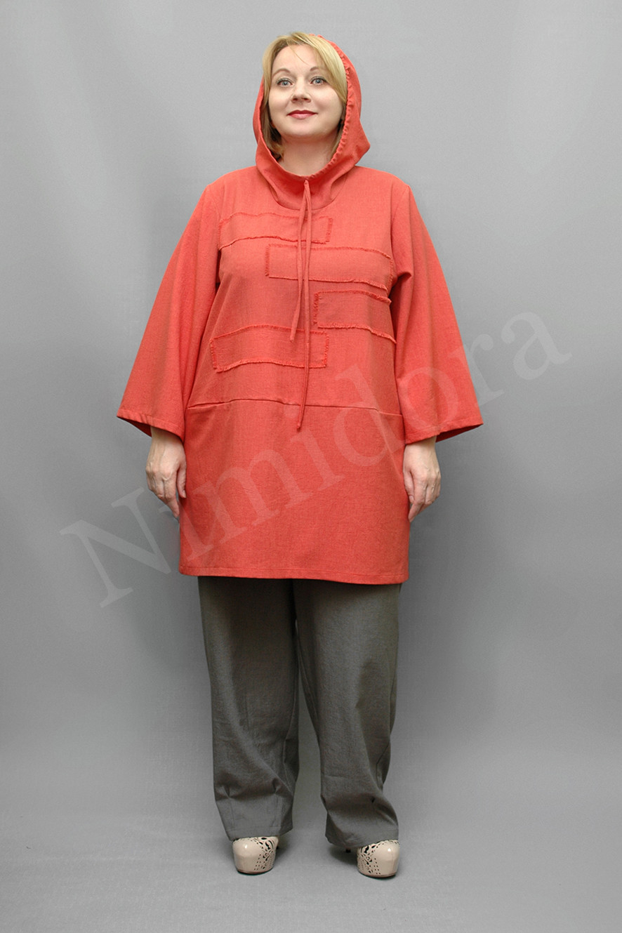 Туника с капюшоном из мягкой, плотной, неэластичной ткани .