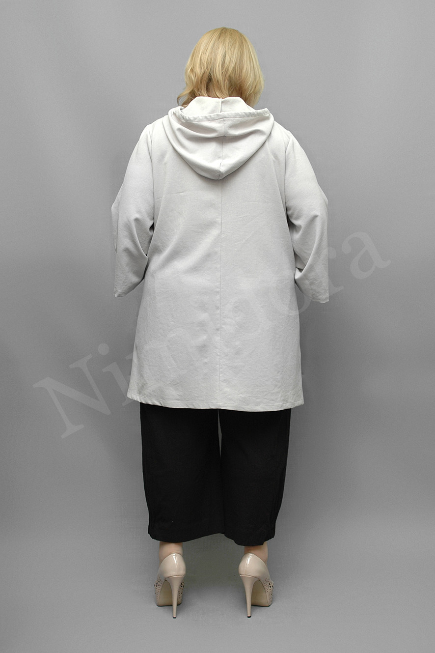 Туника слегка расклешенного силуэта. Капюшон с одним швом, по краю капюшона - кулиска со шнурочком.