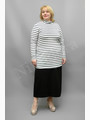 Водолазка из мягкого, тонкого, плотного, слегка пушистого трикотажного полотна.Полотно приятное на ощупь, очень эластичное, красиво драпируется, в полосочках проходит тоненькая нитка люрекса. Водолазка прямого силуэта. Воротник стоечка. Перед без вытачек, спинка простая. Рукав втачной, с одним швом, слегка заужен книзу. Край рукава и низ водолазки подвернут и подшит двойным эластичным швом. Водолазка без подплечников, без разрезов в боковых швах.