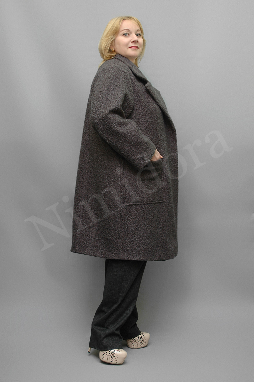 Эффектный жакет на подкладке, из мягкой ткани с крупным букле. Длина по центру спинки 100-105 см