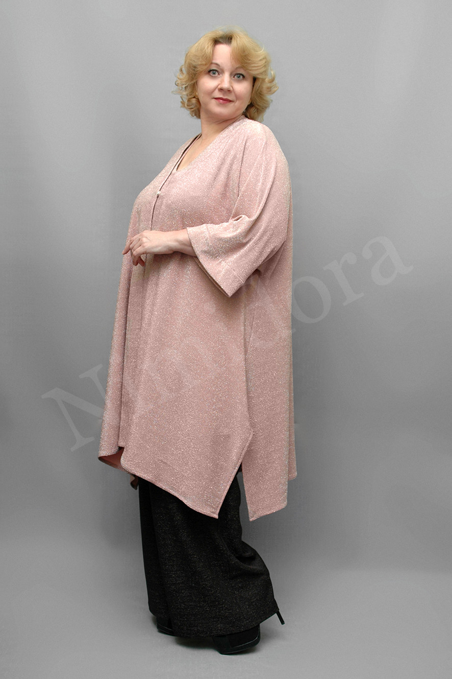 Рукав цельнокройный, укороченный, подойдет на полные ручки. Манжеты высотой 5,5 см.