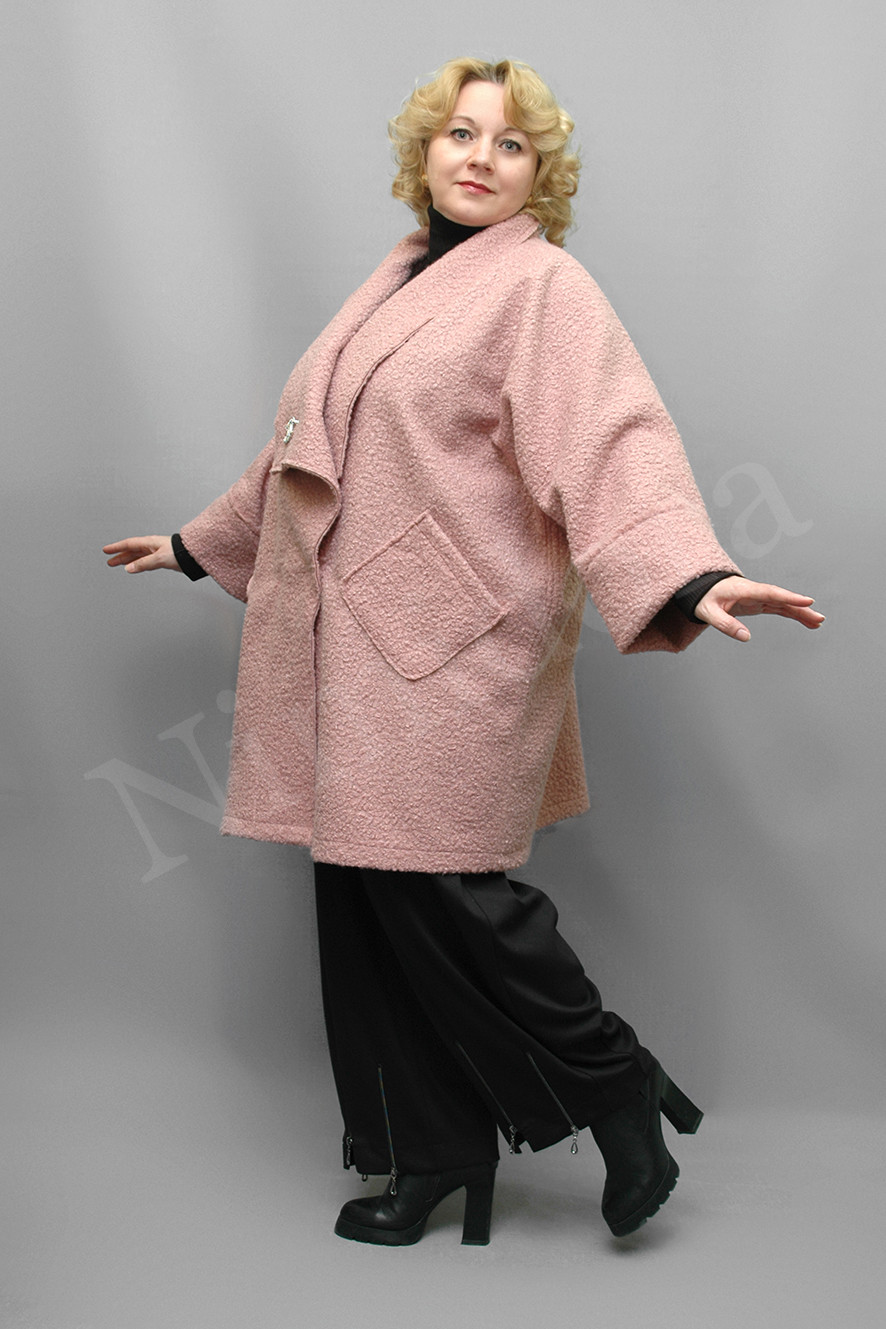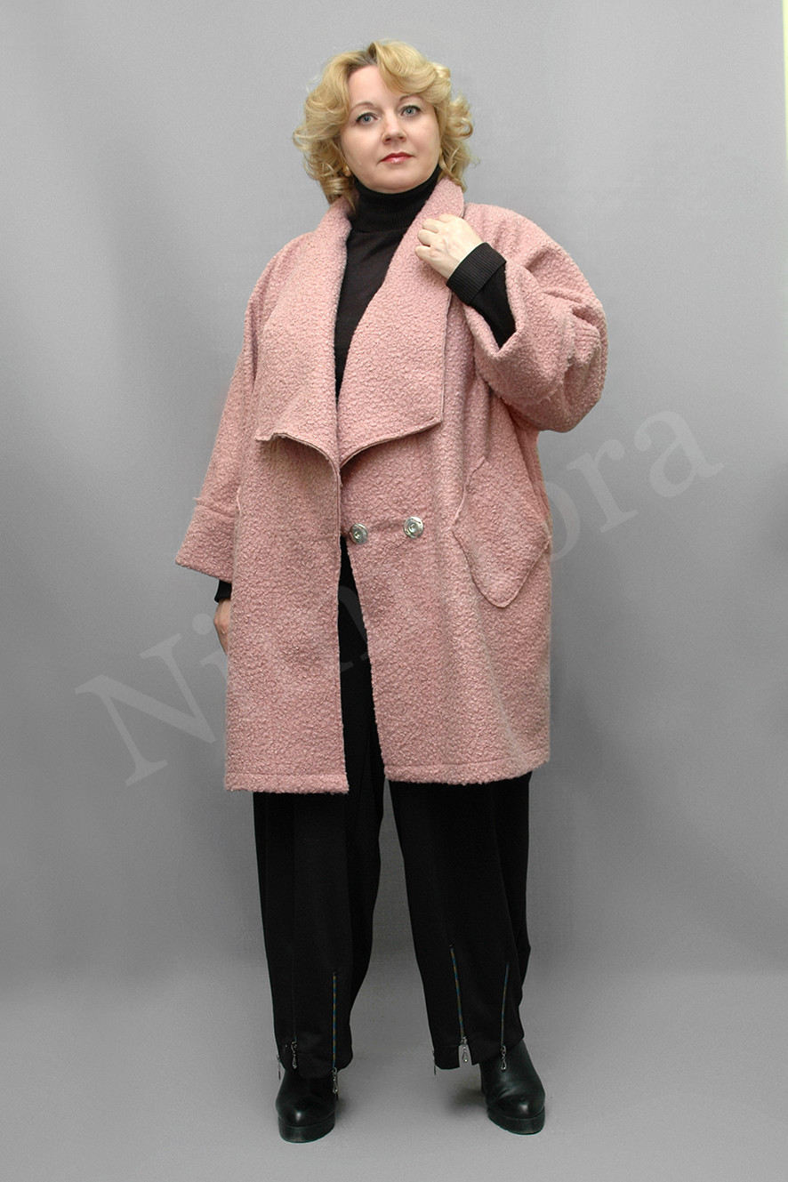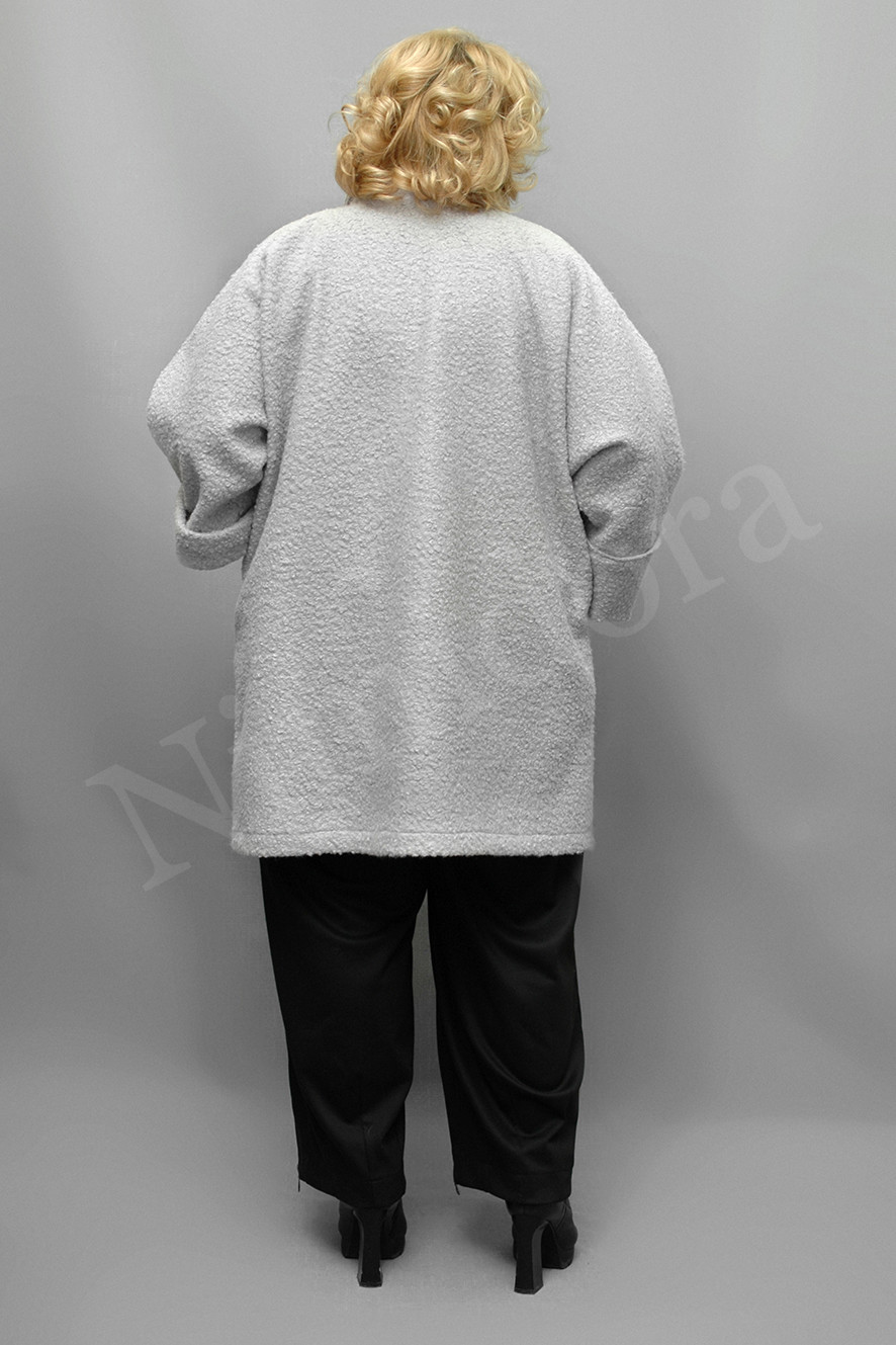 Эффектный жакет из теплой, мягкой ткани с крупным букле. Жакет без подкладки. Длина по спинке 86-90 см.